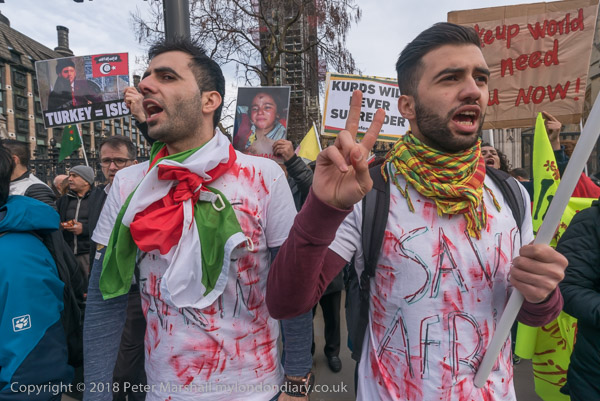 Men wearing t-shirts with 'bloodstains' and the message 'Save Afrin'