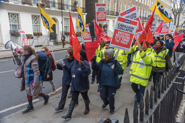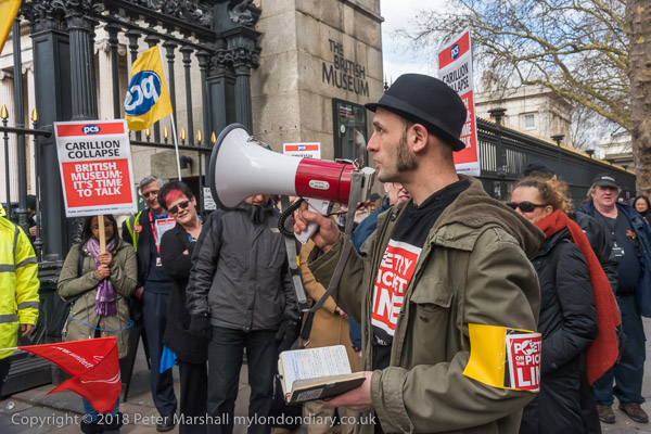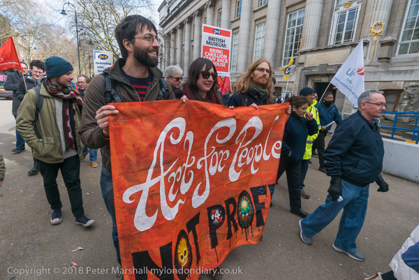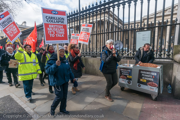 The protesters march around the block containing the British Museum