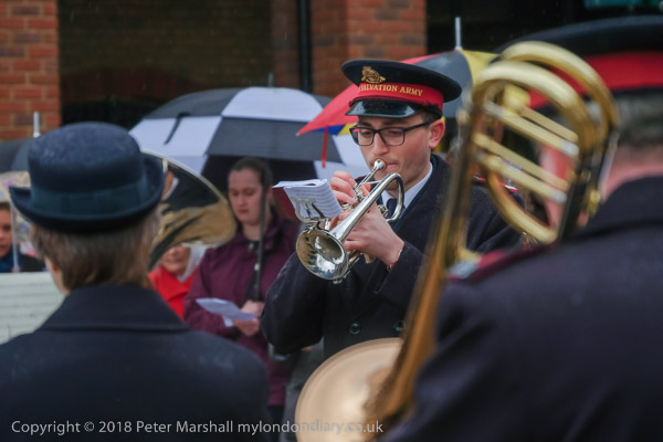 The rain has got harder and the Salvation Army have taken shelter,