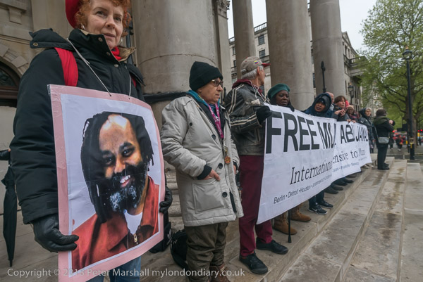 A silent vigil on the steps of St Martin-in-the-Fields Church in Trafalgar Square on the day that a court in Philadelphia is holding a hearing into the re-opening of his case.