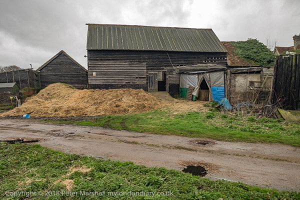 The path leaves the right of way by this barn and takes a slightly