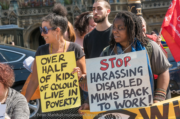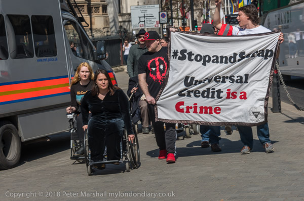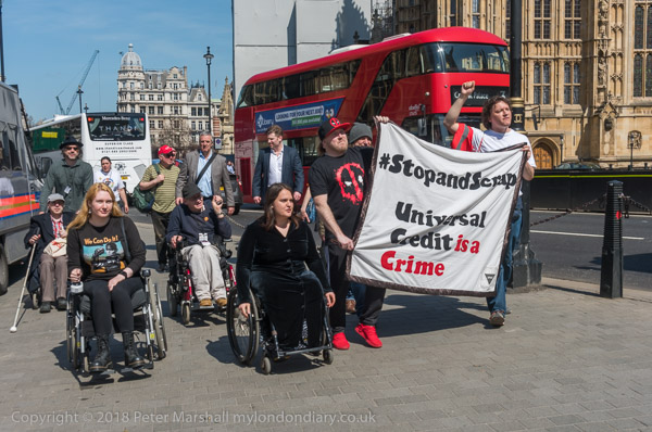 with their banner '#StopandScrap Universal Credit is a Crime'