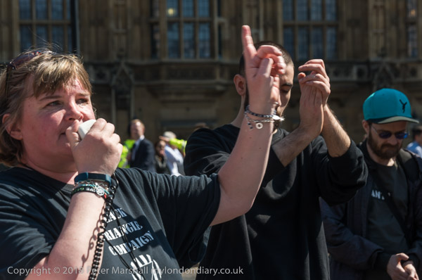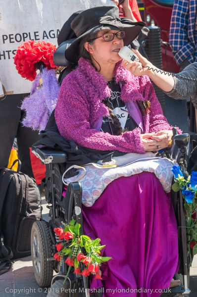 Paula Peters of DPAC speaks to the protesters as they meet outside