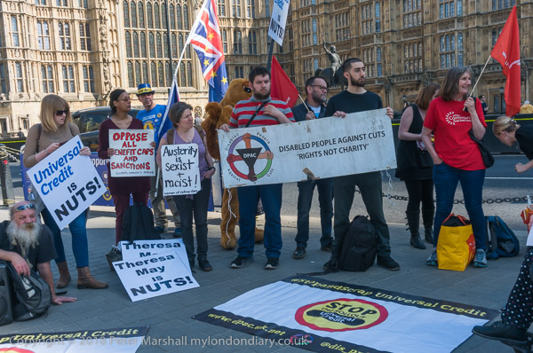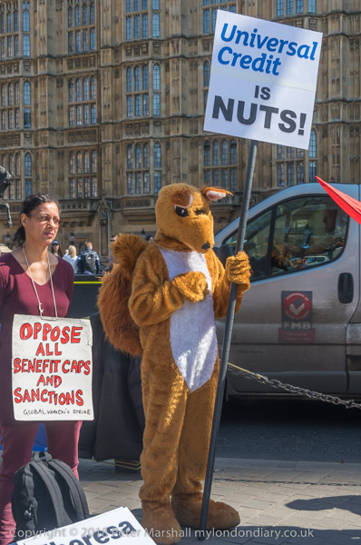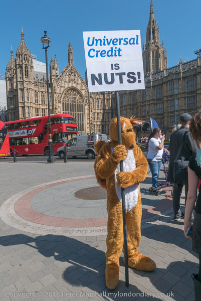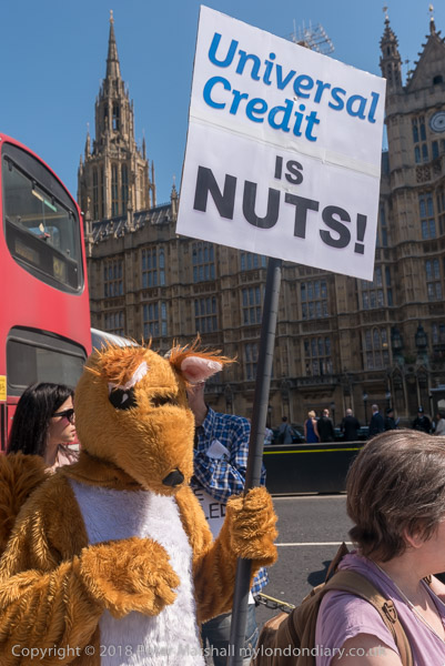 and a squirrel held a placard 'Universal Credit is NUTS!' though perhaps