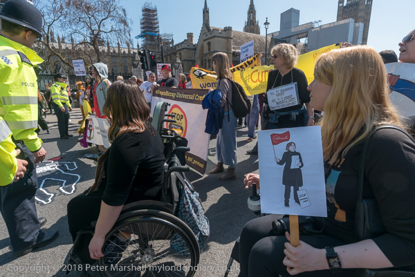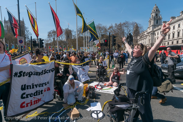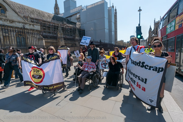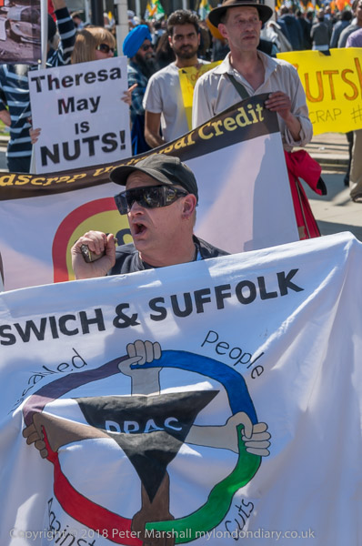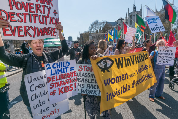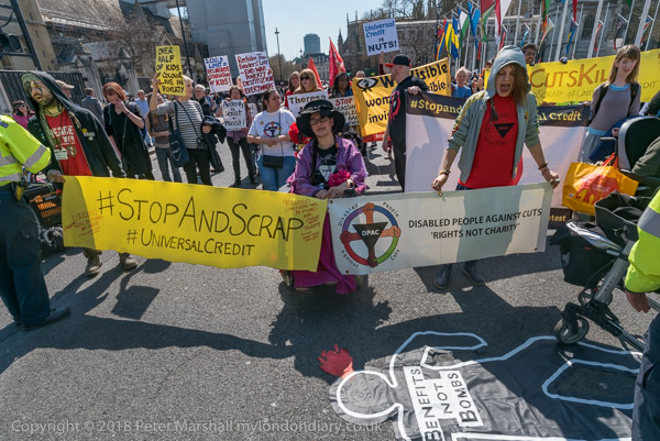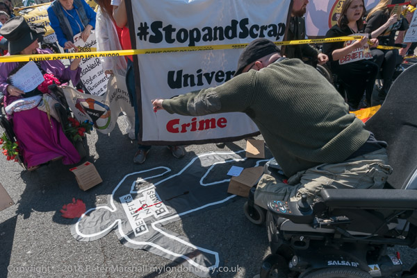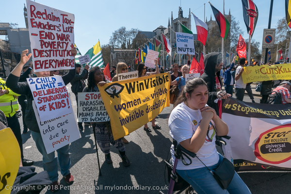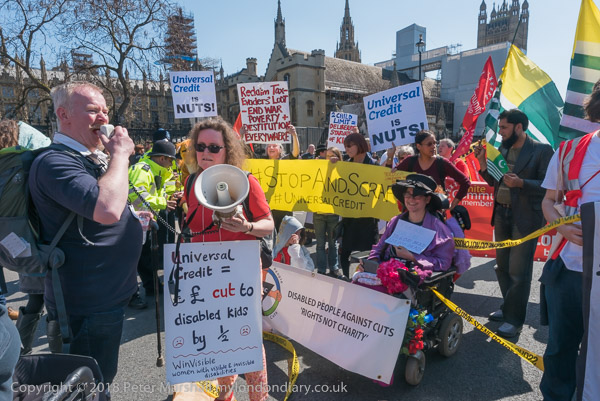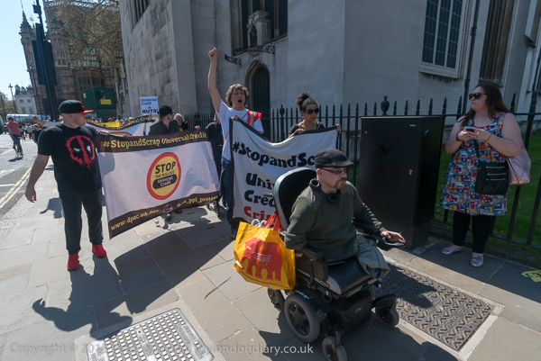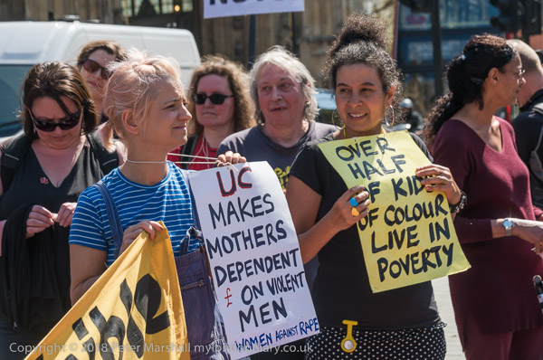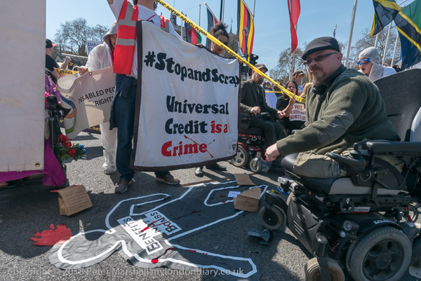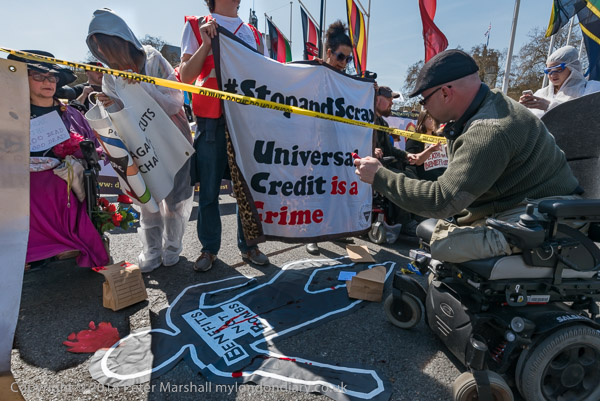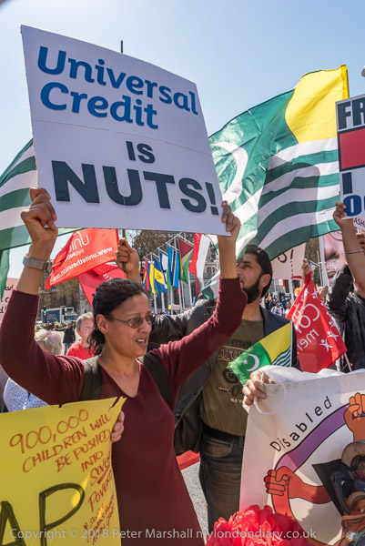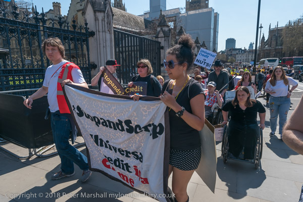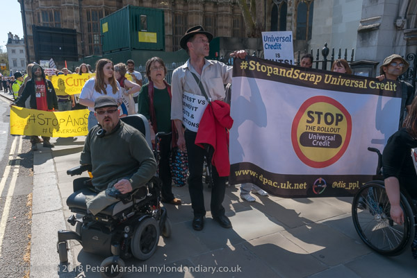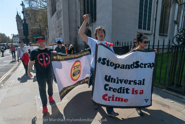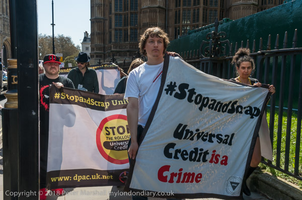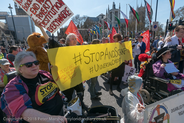 and on the banner '#StopandScrap - Universal Credit is a crime'