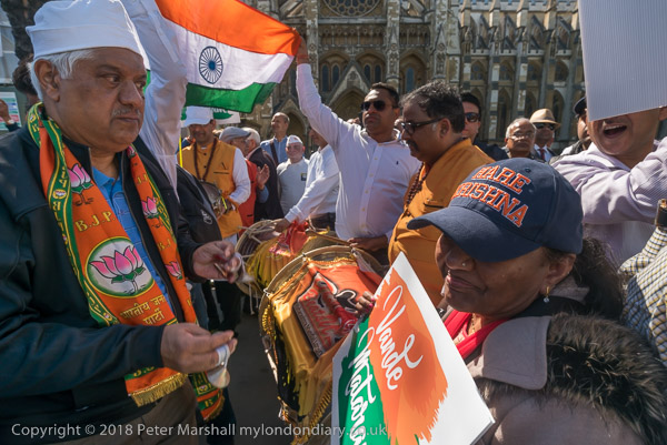A crowd of a couple of hundred Hindus has also come to welcome Prime