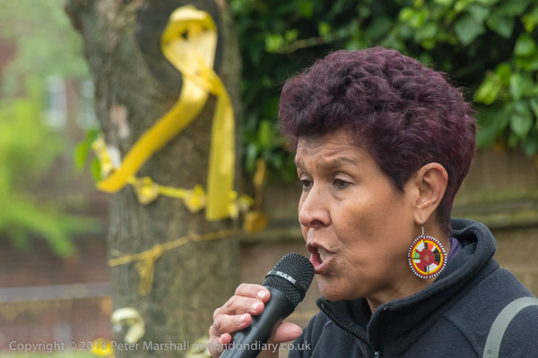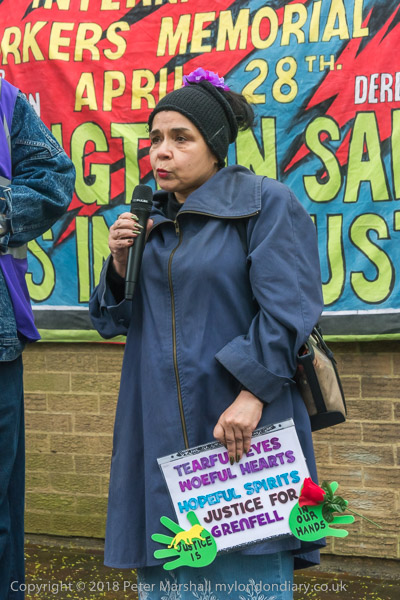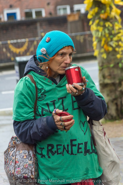 A woman who worked at the Grenfell nursery waiting to speak stands