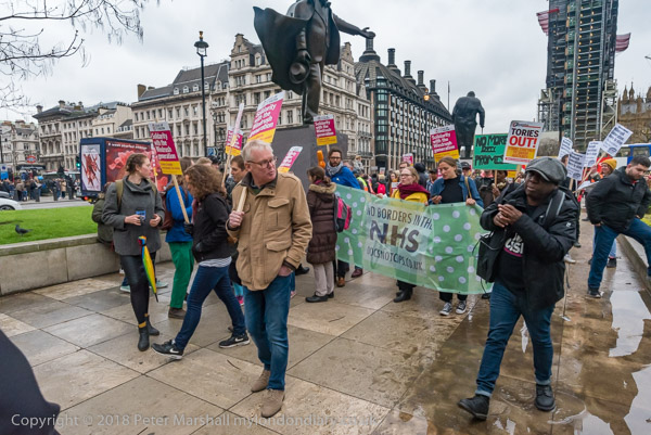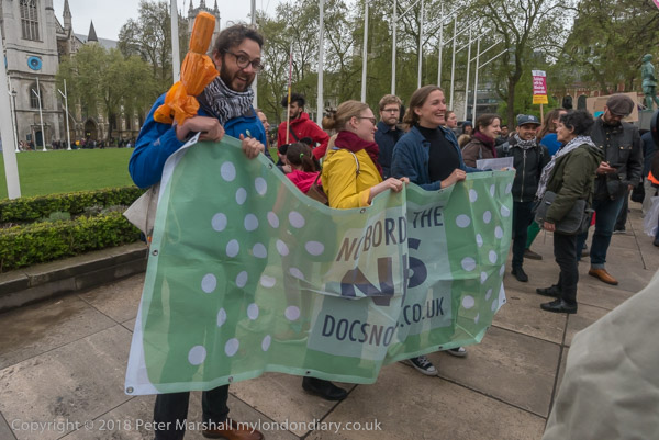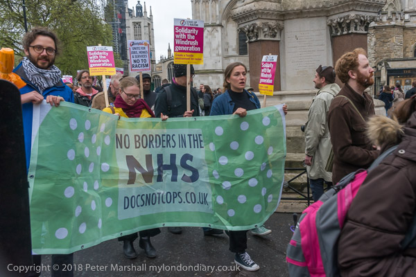 Docs Not Cops with their banner 'No Borders in the NHS'