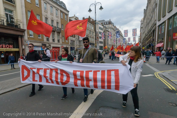Turkish MLKP members with a banner 'Defend Afrin'