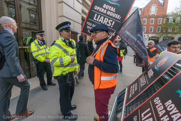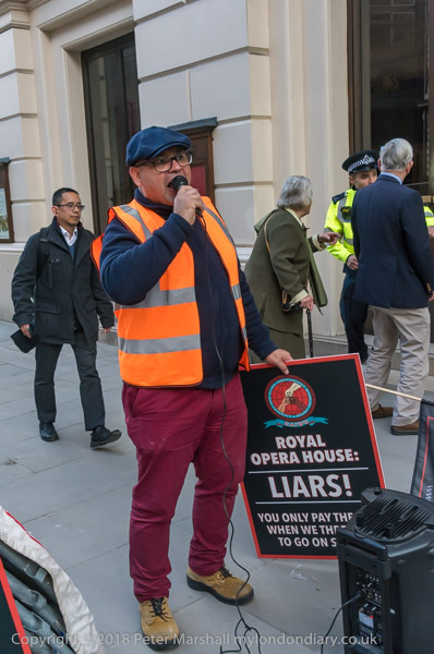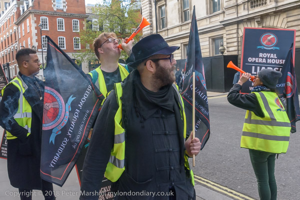 and they start a noisy protest in front of the Royal Opera house