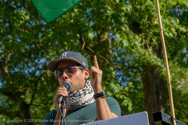 The platform had a large poster from Friends of Al-Aqsa with the message