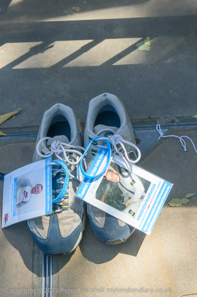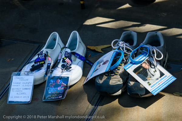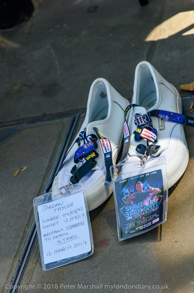 Putting out empty shoes for Sam Johnston