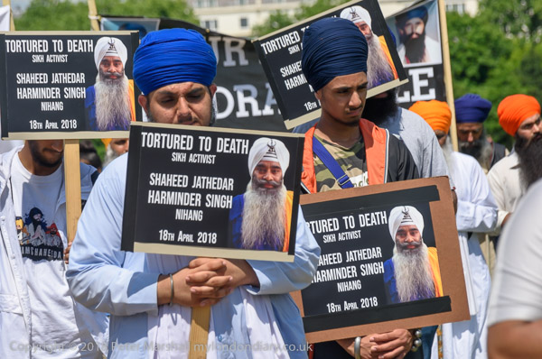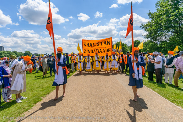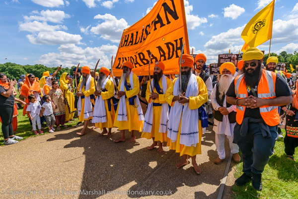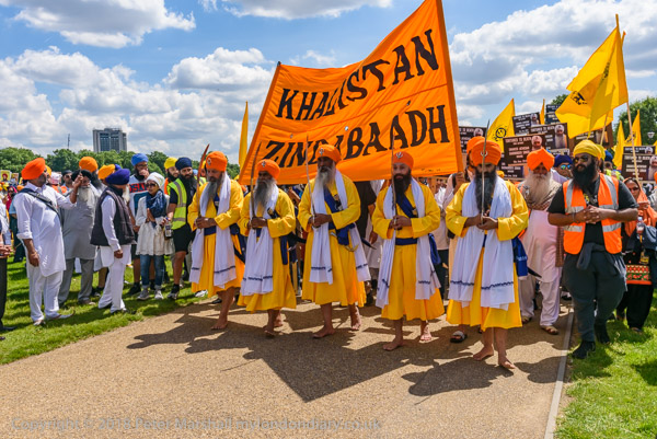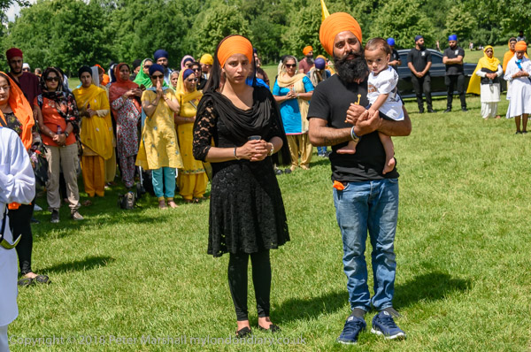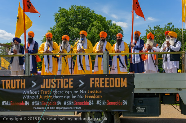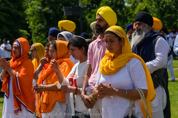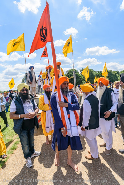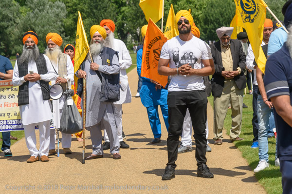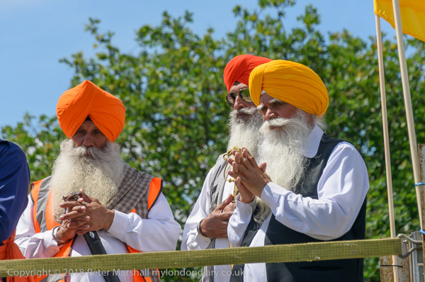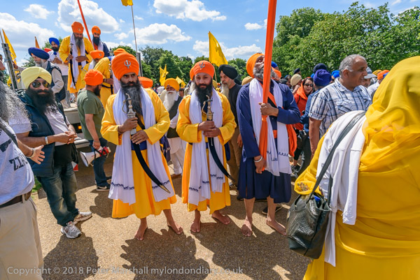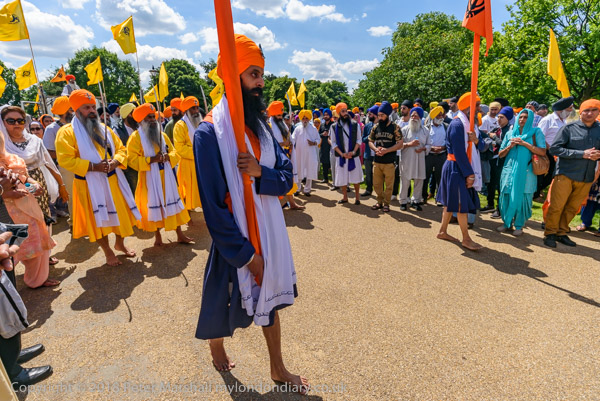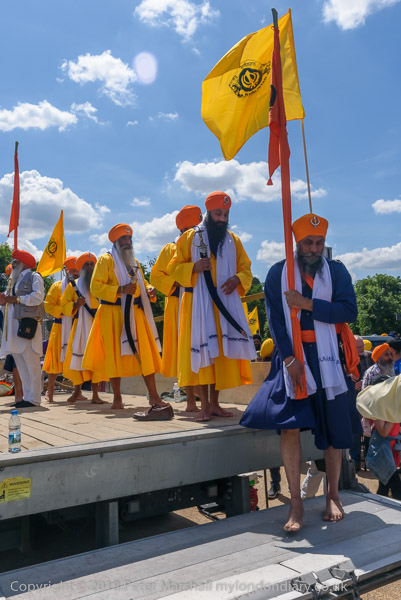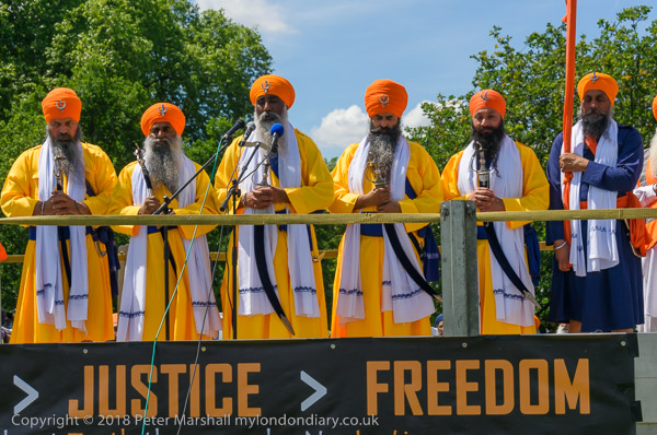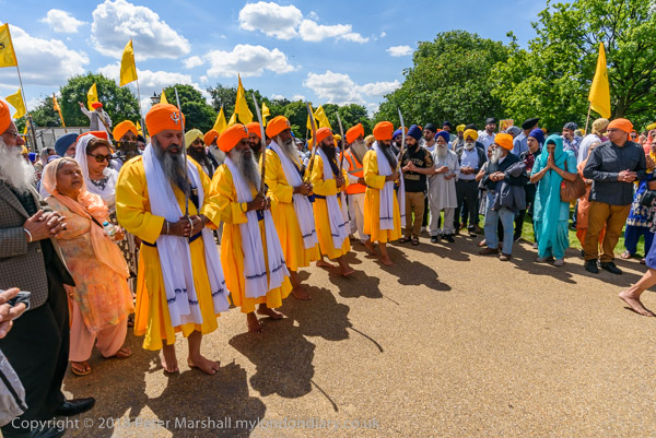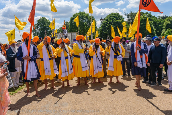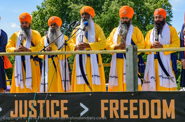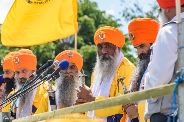 Five Khalsa - representing the Five Blessed Ones or Panj Pyare - stand