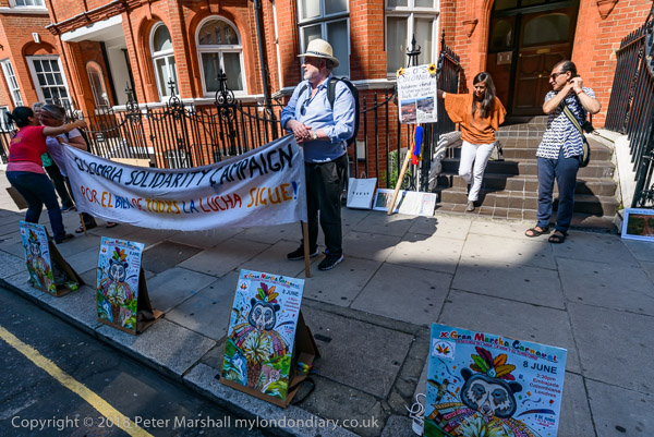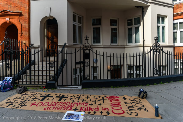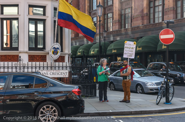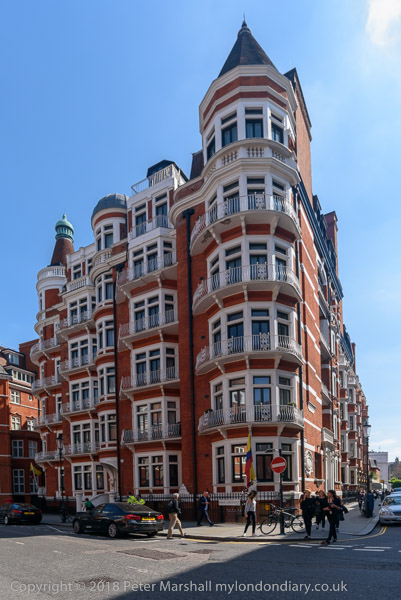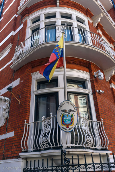 The Ecuadorian embassy is a flat in this building behind Harrods