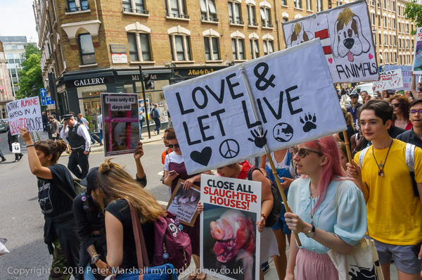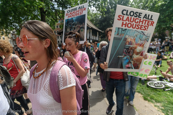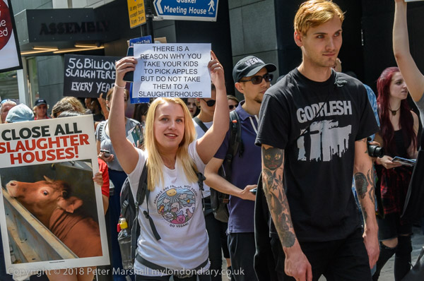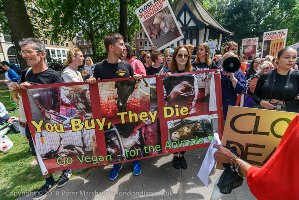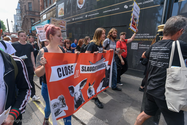 The 'Close all Slaughterhouses' banner at the head of the march