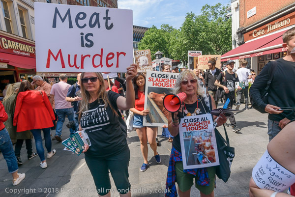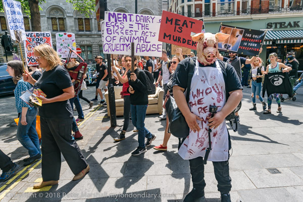 'Meat? Murder!' Right: 'Dairy