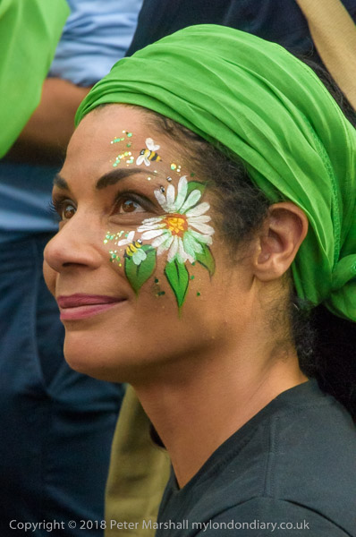 A woman has some fine face paint