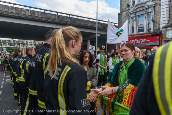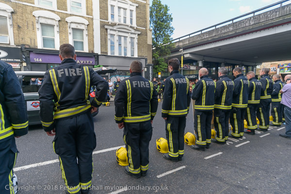 Firefighters line both sides of Ladbroke Grove in respect