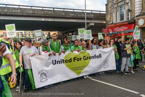 The march was led by the 'United For Grenfell' banner. And Grenfell