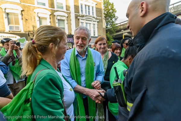 Jeremy Corbin and local MP Emma Dent Coad wait their turn to shake