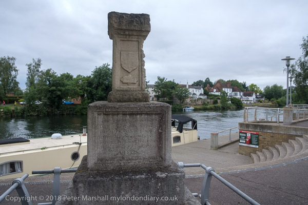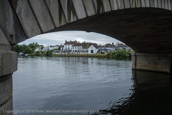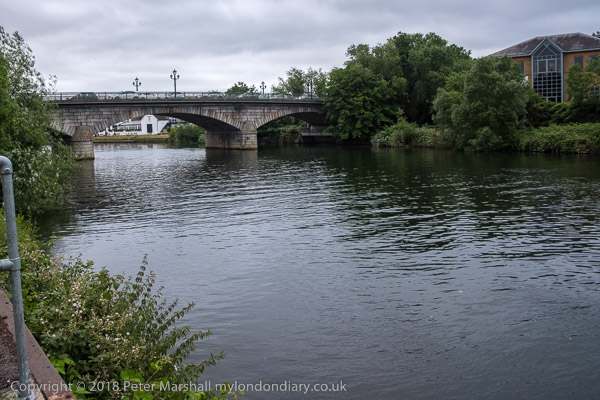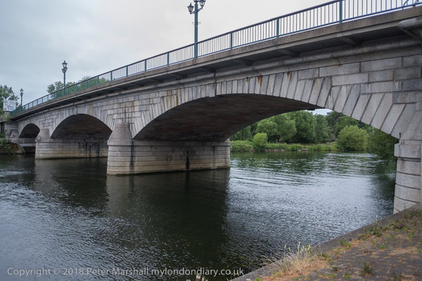 Staines Bridge. The land at right is also in Staines, as the boundary