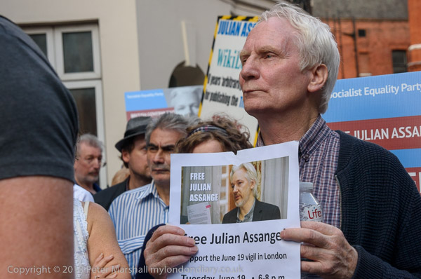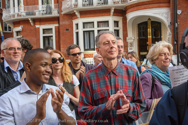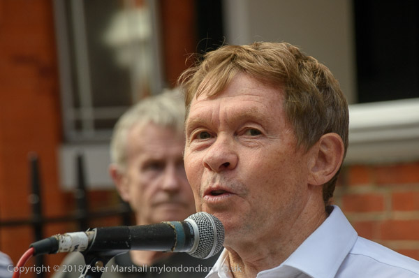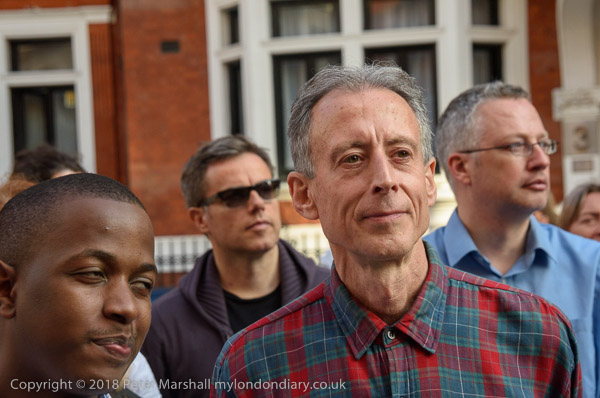HUman Rights protester Peter Tatchell stands in the crowd. He held