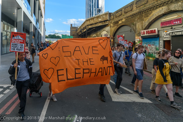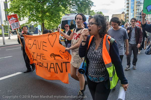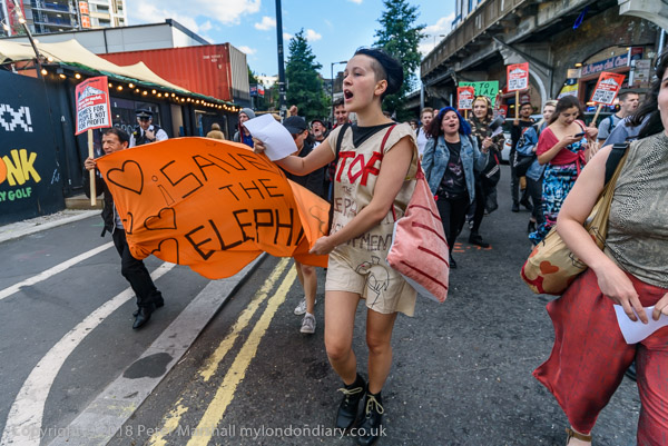 Marianne Murray in her 'Stop the ELephant Development' dress