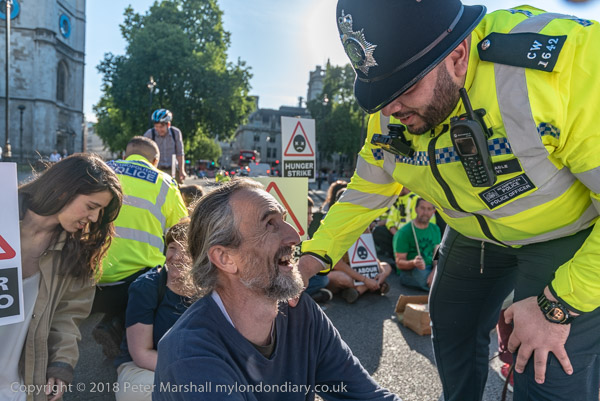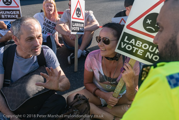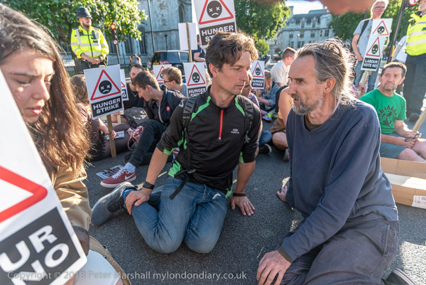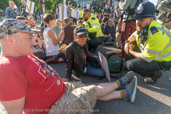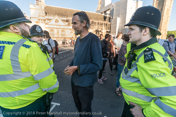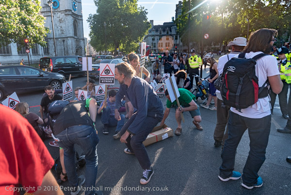 At 6.45pm, Roger Hallam leads the protesters on to the road at the