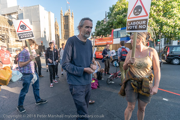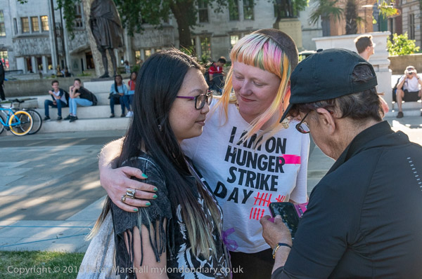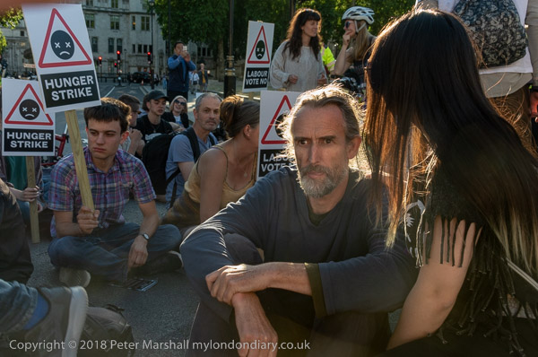 Protesters, including some of the hunger strikers, meet up in Parliament