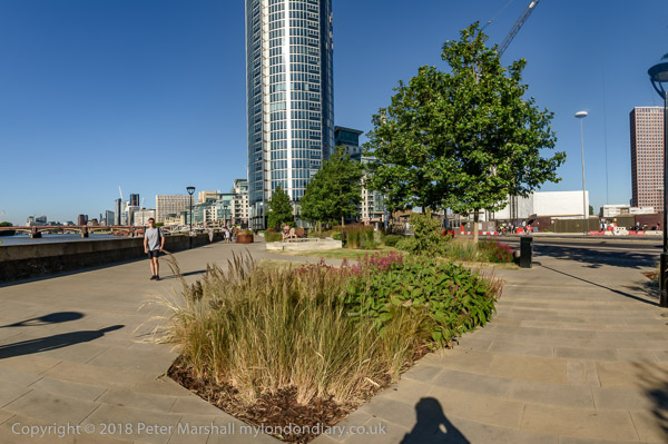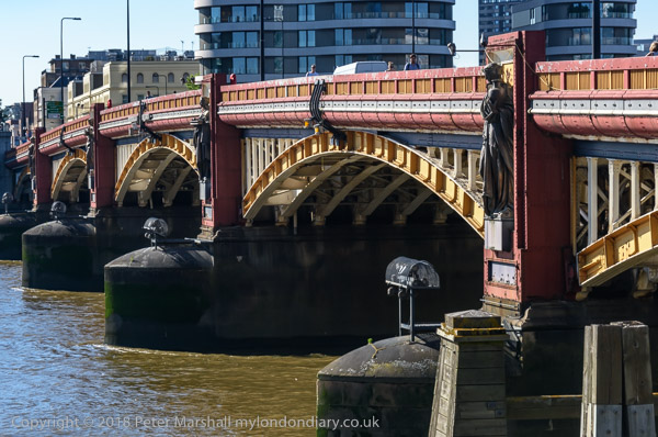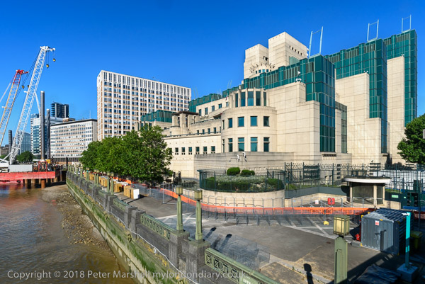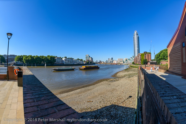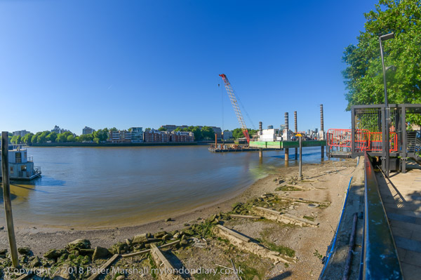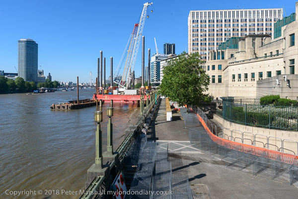 View downstream from Vauxhall Bridge - with platform for Thames Tideway