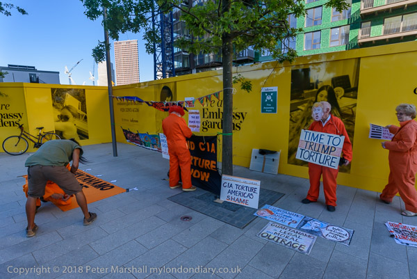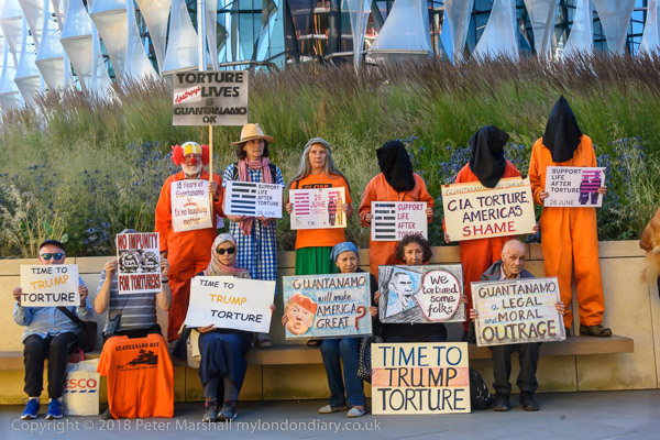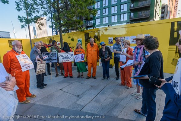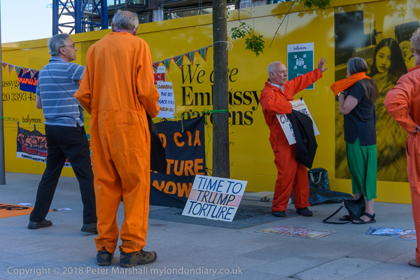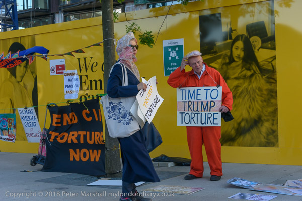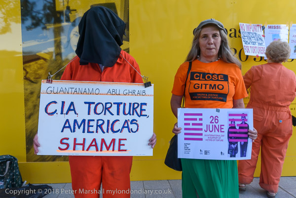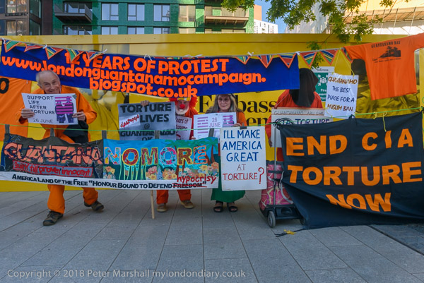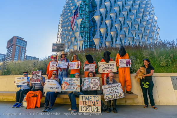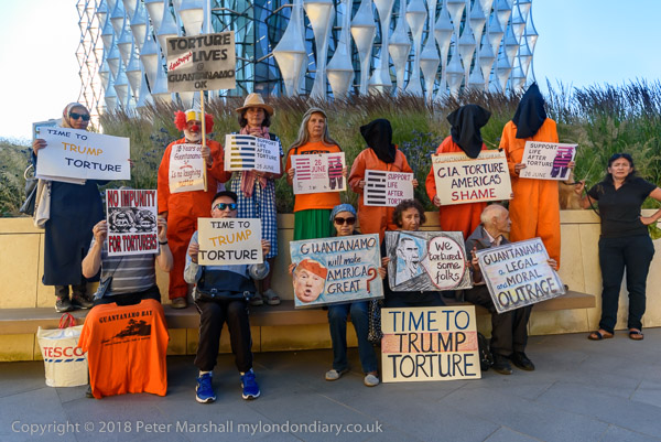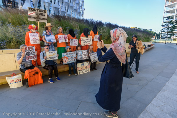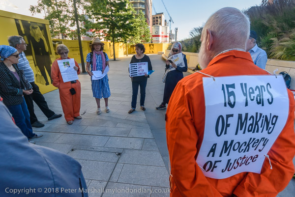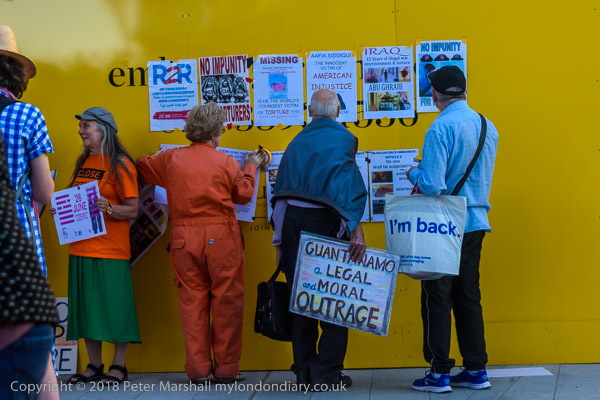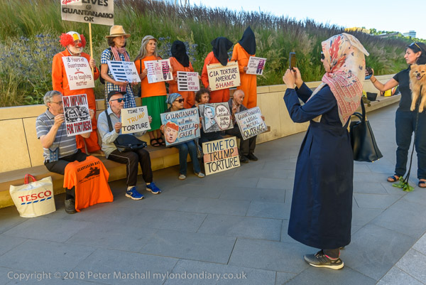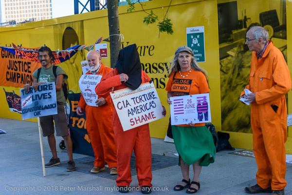 A man in clown headdress reminds us that 16 years of Guantanamo is
