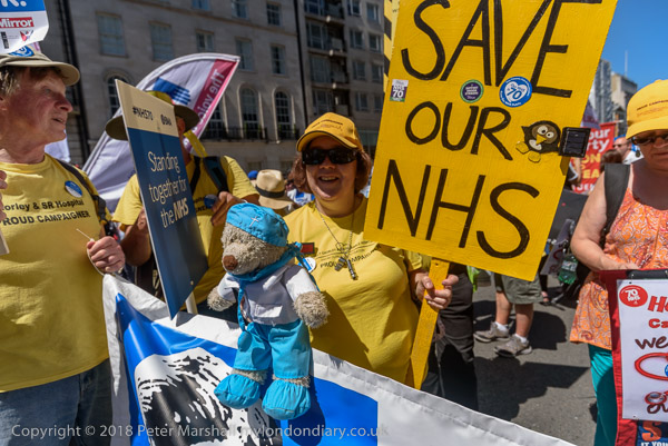 'Sae Our NHS' and a teddy bear doctor