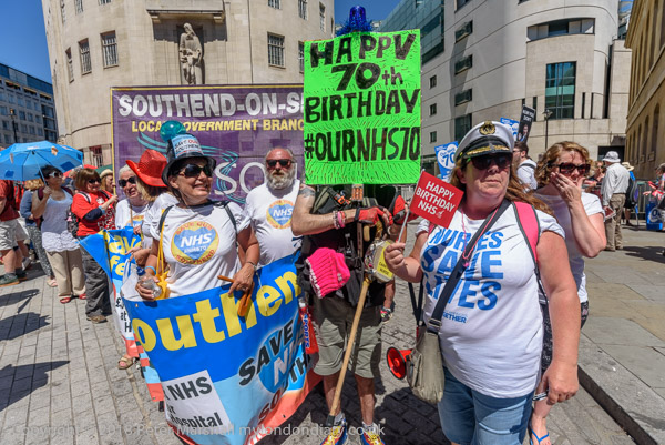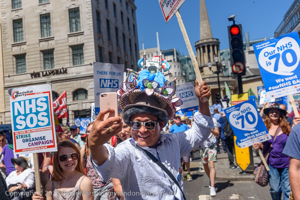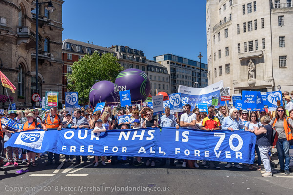 The man banner - Our NHS is 70 - Free, For All, Forever