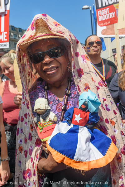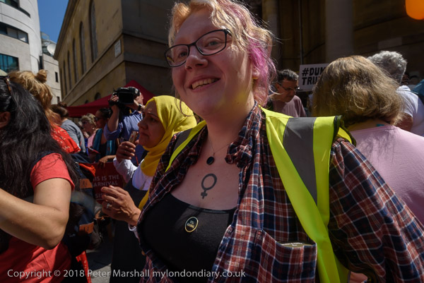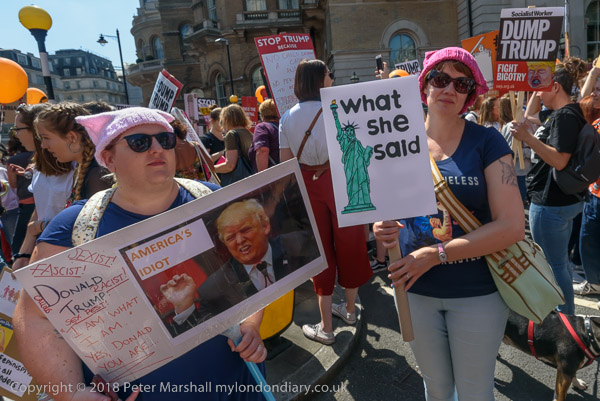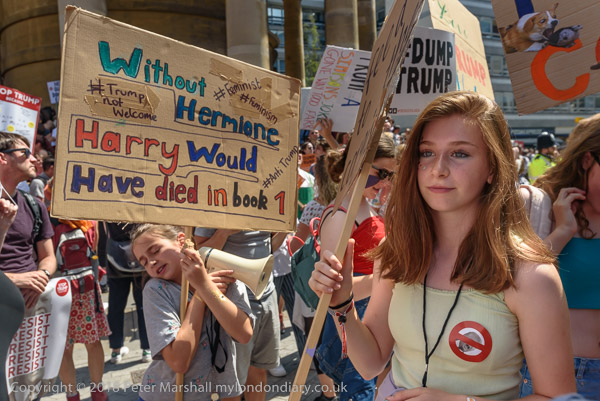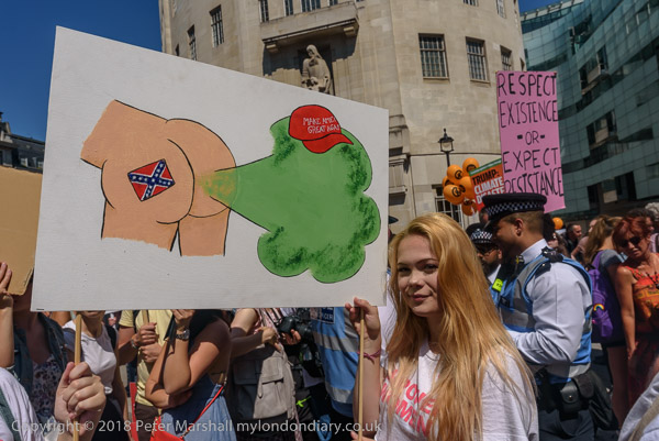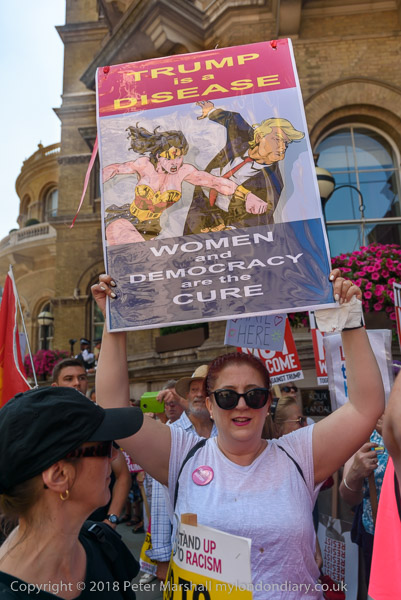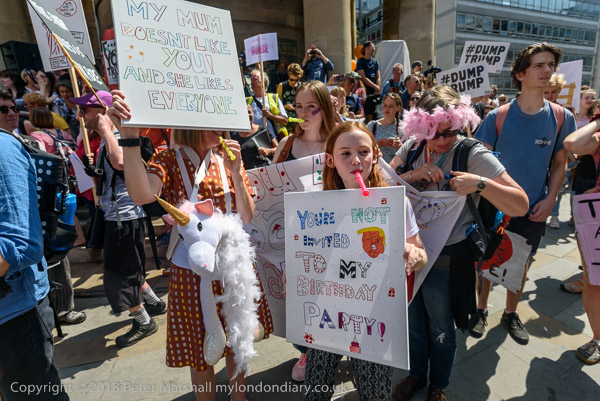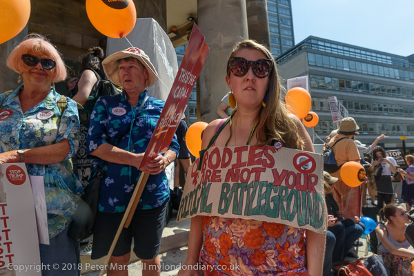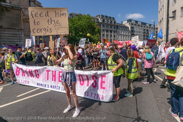 'Bring The Noise' banner - and a placard 'feed him to the corgis'