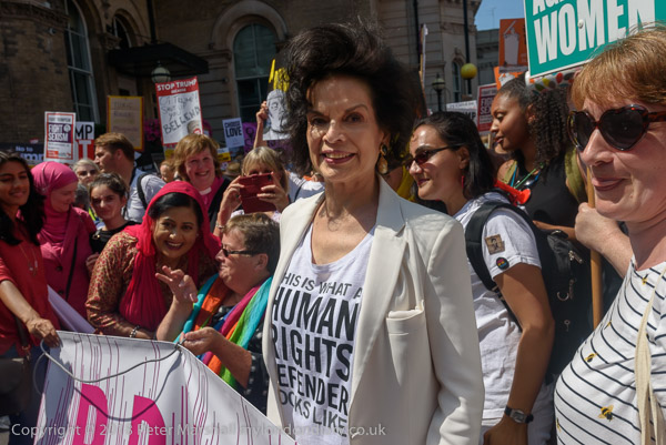 Her t-shirt has the message 'This is what a Human RIgths Defender