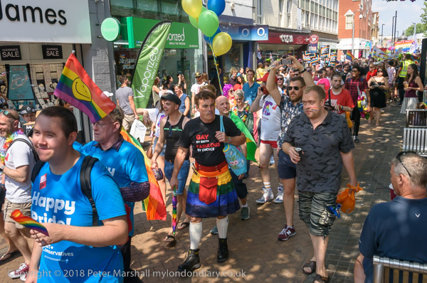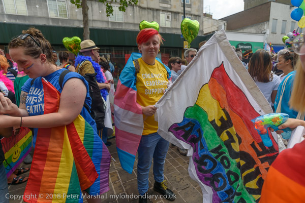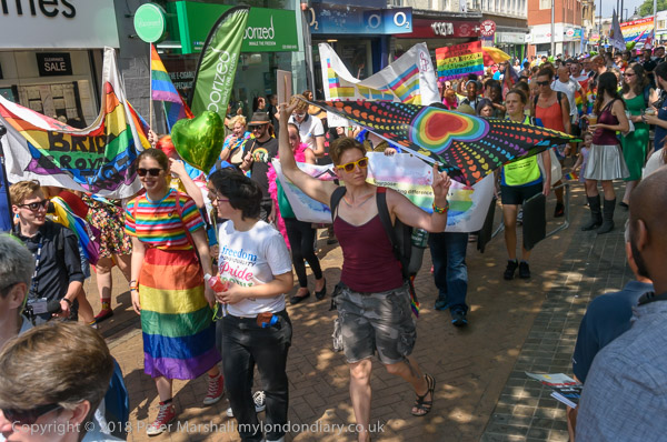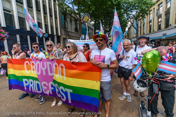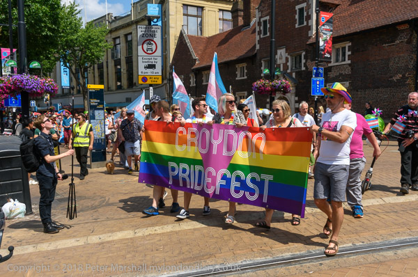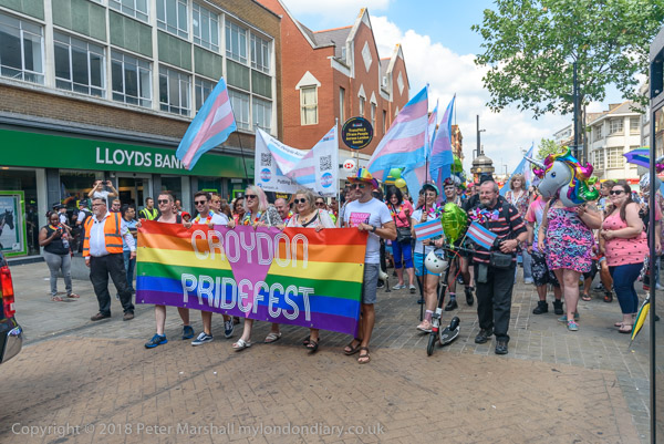 Croydon Pridefest banner at the front of the march