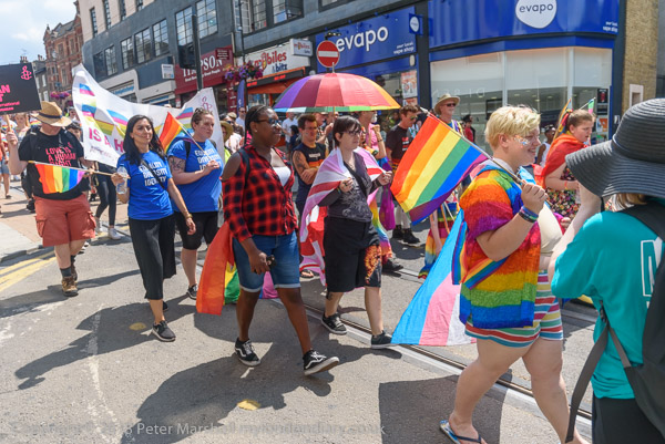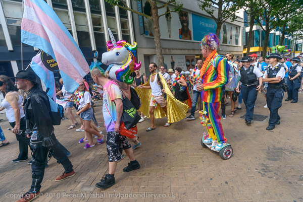 The procession turned down Crown Hill, on its way to the Pride festival