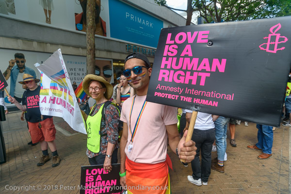 and Amnesty International placard 'Love Is A Human Right'