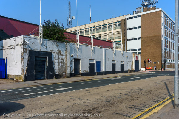 Warehouses on Guildhall Rd, on the south side of Queen's Gardens,
