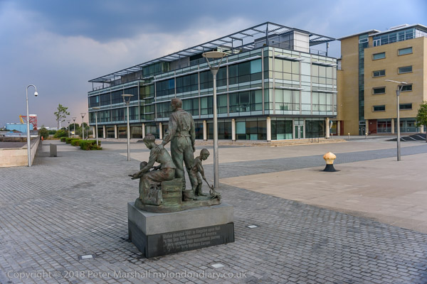 HUmber Quays with a memorial to the emigrants who came from Europe