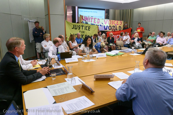 "local Tory councillors see the place where they live as not a community, but a business opportunity, and under the pretext of 'regeneration', and despite a promise to residents of a better housing on the same site, handed the publicly owned land to Barratt London for a private, luxury high rise property development.