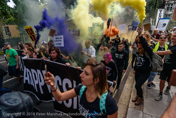 Thousands of vegans march through London from Westminster to Hyde Park on the Official Animal Rights March founded by animal rights organisation Surge, calling for an end to animal oppression and urging everyone to stop eating animals and using dairy products.