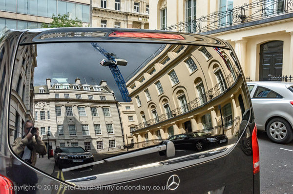 Quite a mixture of pictures taken as I sat in trains and buses or walked around the streets between protests - and a couple of images of protests that didn't seem worth covering. And my reflection in the back of a car with a very clean rear window.