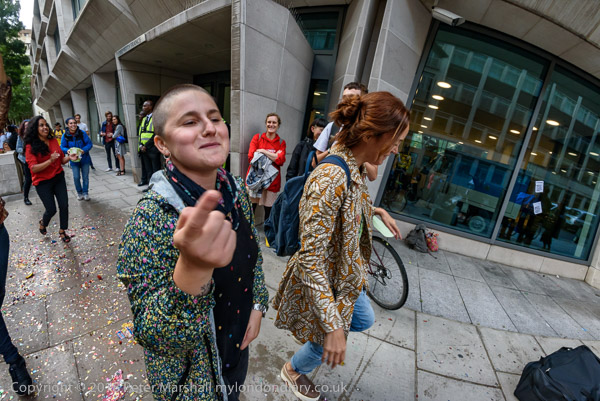 PRotesters pose for a group photo in from of the Ministry of Justice