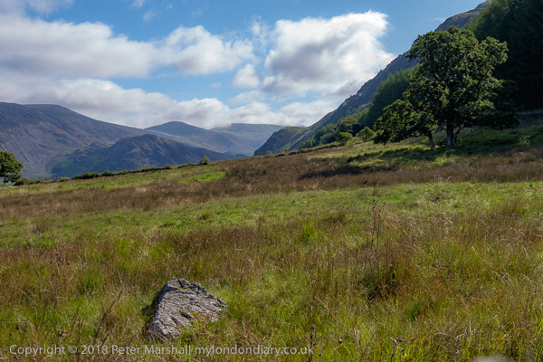 Some rocky bits on the hillside behind looking up towards Crag Fell