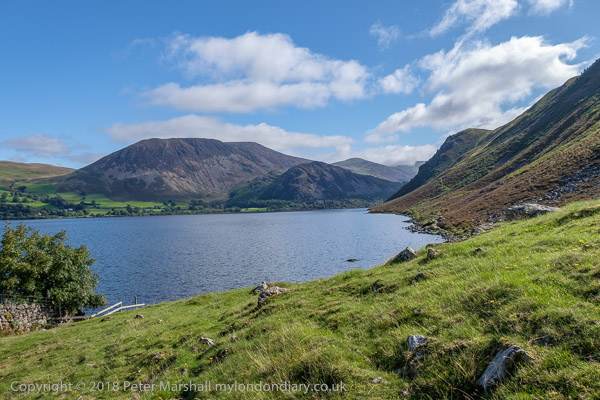 Across the water is Bowness Knott, with behind it Herdus / Great Borne