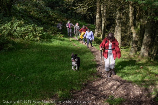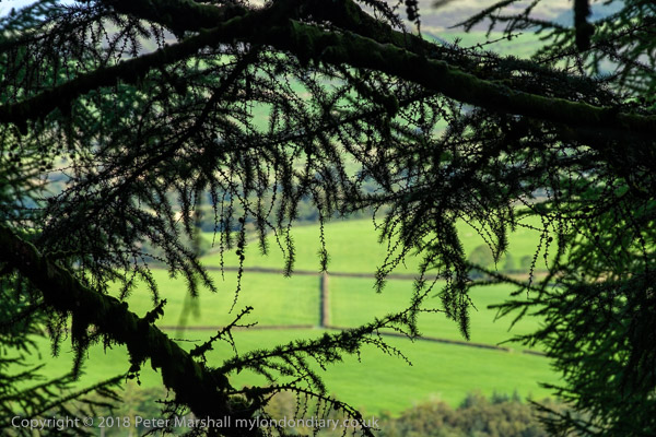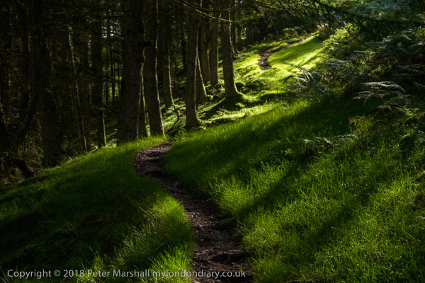 with occasional glimpses through branches of the valley below