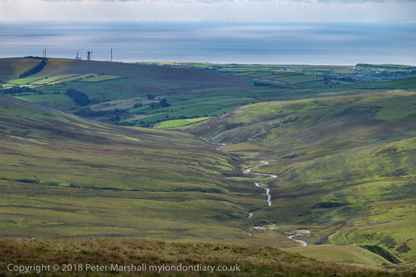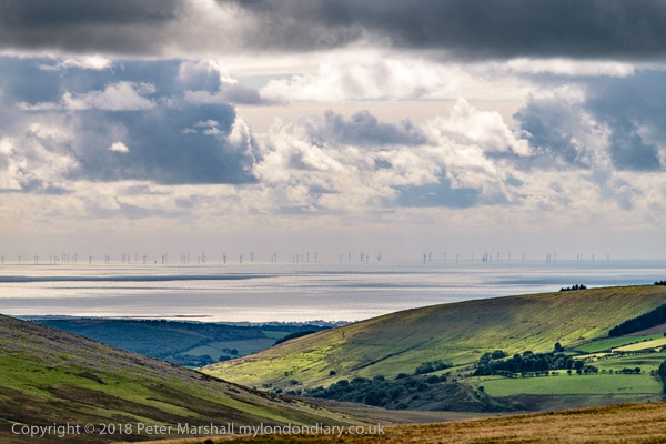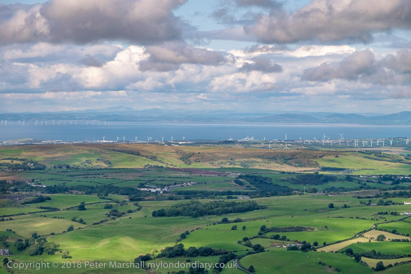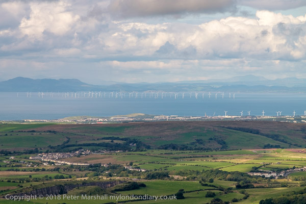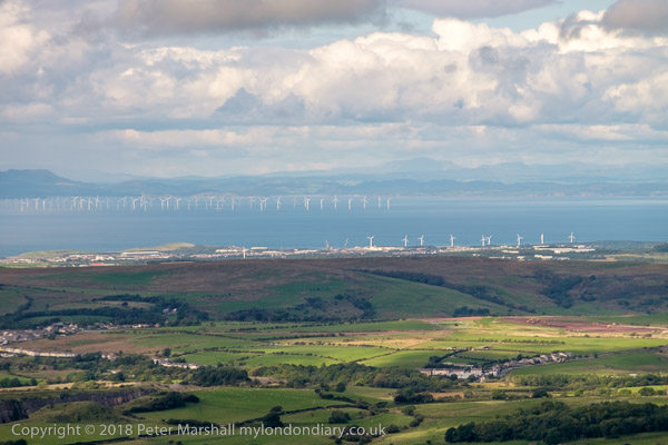 Lookiong west to the wind farms and Scotland