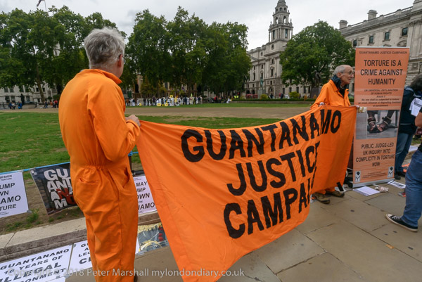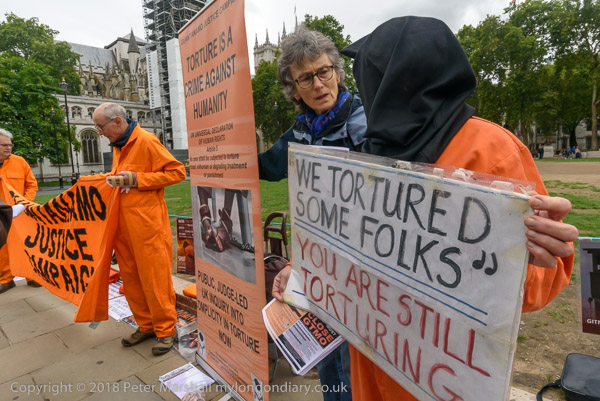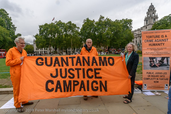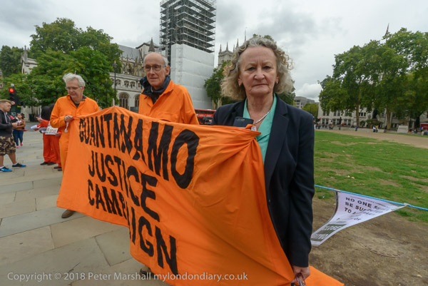 and held the banner for a picture with the Guantanmo Justice Campaign