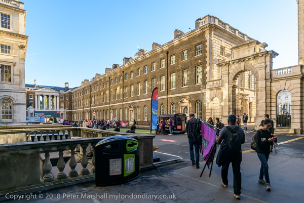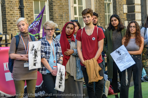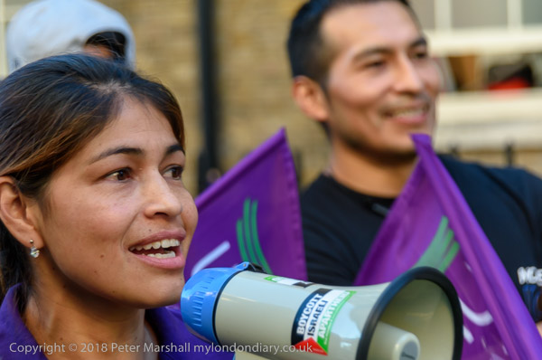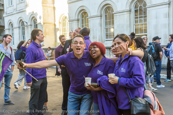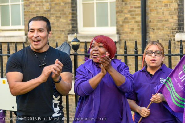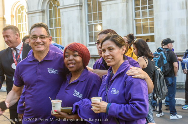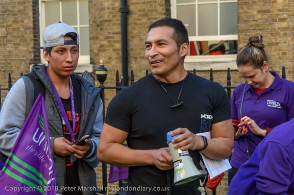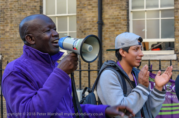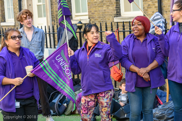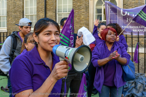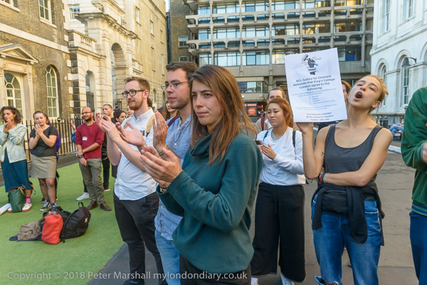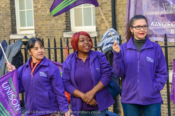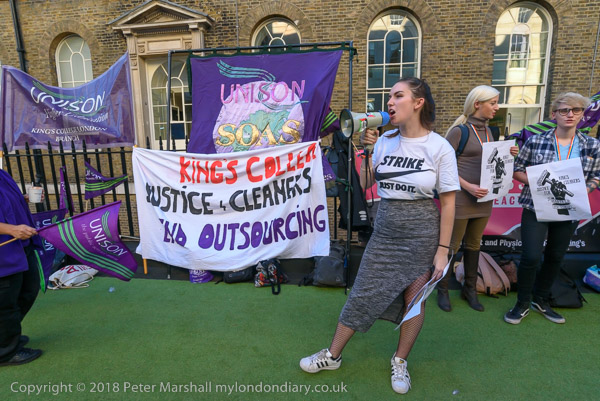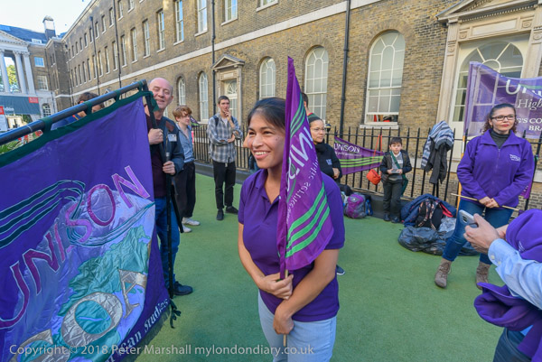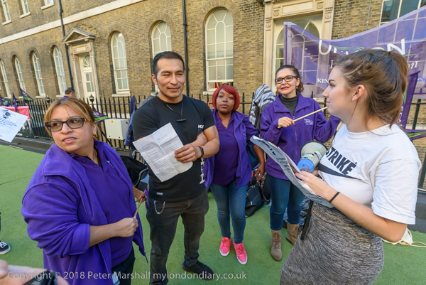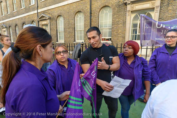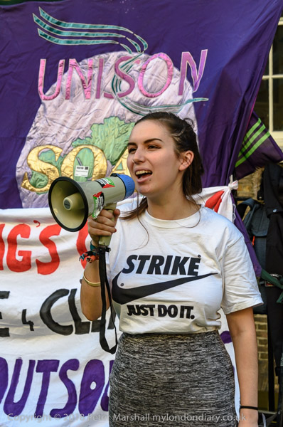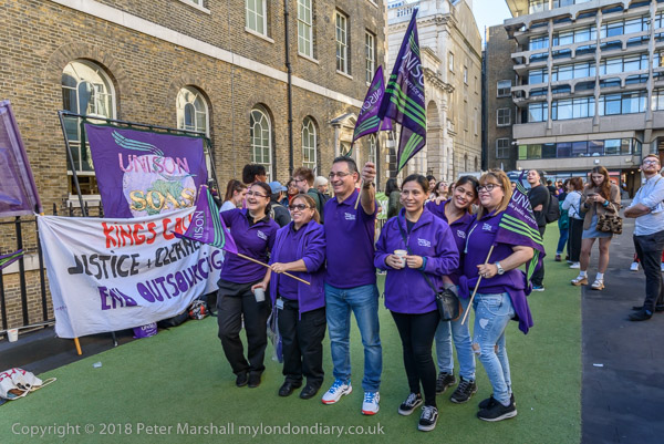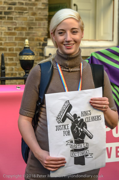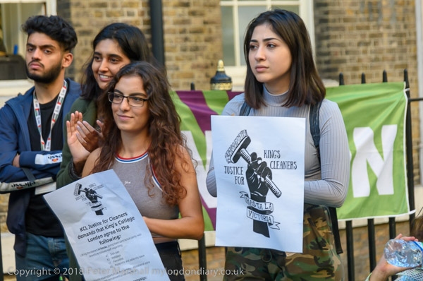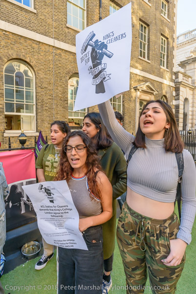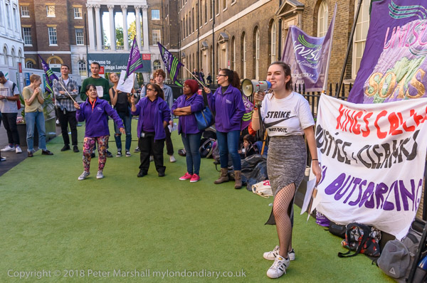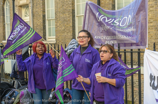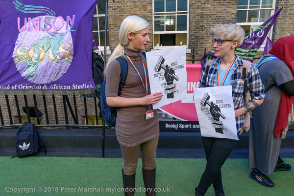 People carriy in the SOAS Unison banner to join the cleaners inside King's.